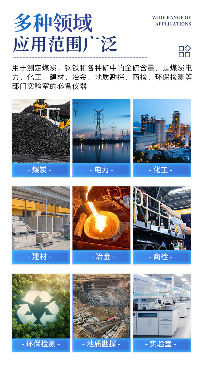本公司生產(chǎn)的系列微機(jī)全自動定硫儀,主要用于測定煤炭、鋼鐵和各種礦中的全硫含量,是煤炭、電力、化工、建材、冶金、地質(zhì)勘探、商檢、環(huán)保檢測等部門實驗室的優(yōu)選必備儀器。