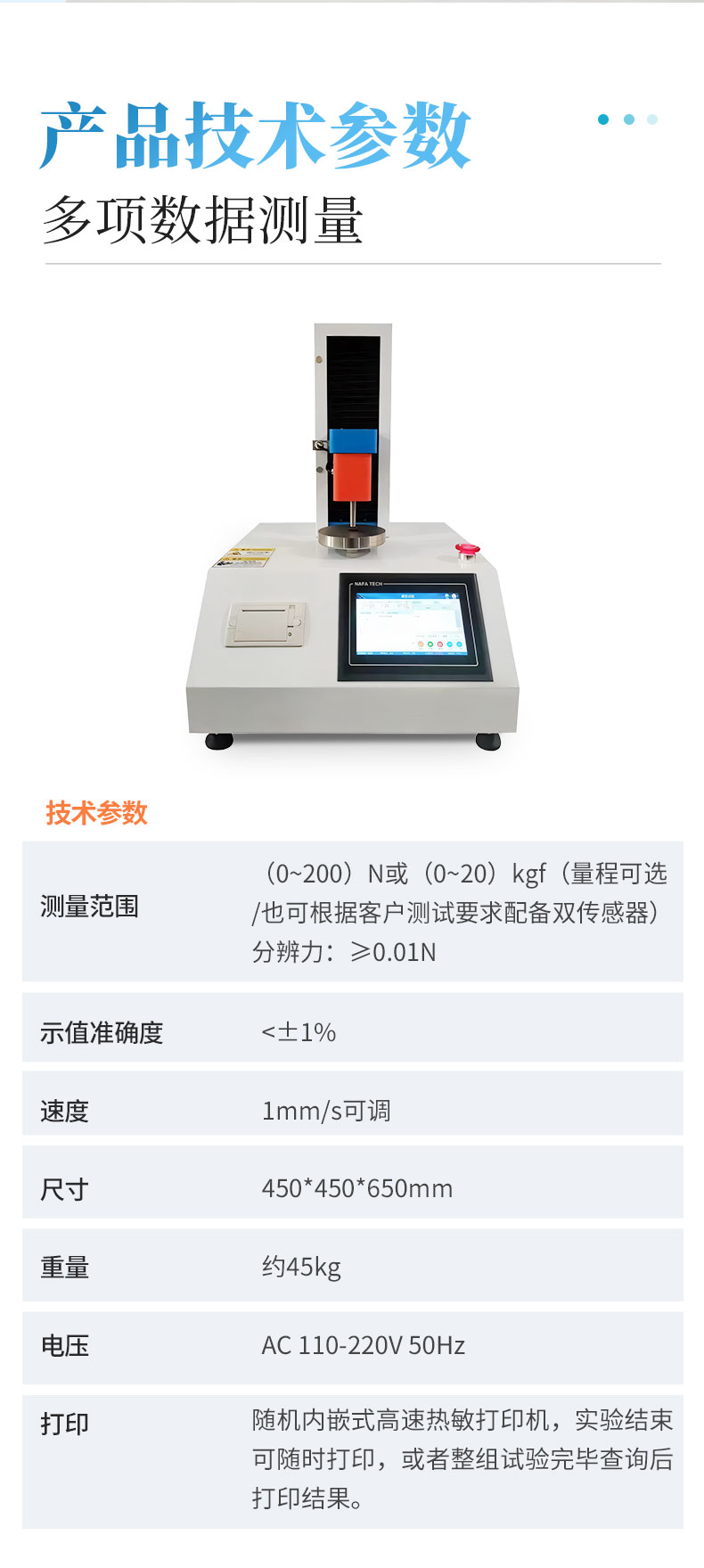 1、采用芯片控制,高精度測力傳感器,精度高。