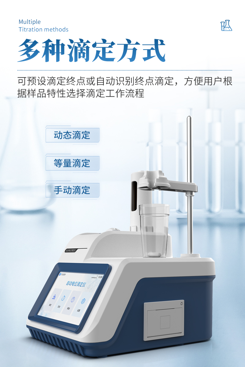 4、支持動(dòng)態(tài)滴定、等量滴定、手動(dòng)滴定的滴定方式,可預(yù)設(shè)滴定終點(diǎn)或自動(dòng)識(shí)別終點(diǎn)滴定,方便用戶根據(jù)樣品特性選擇**滴定工作流程;