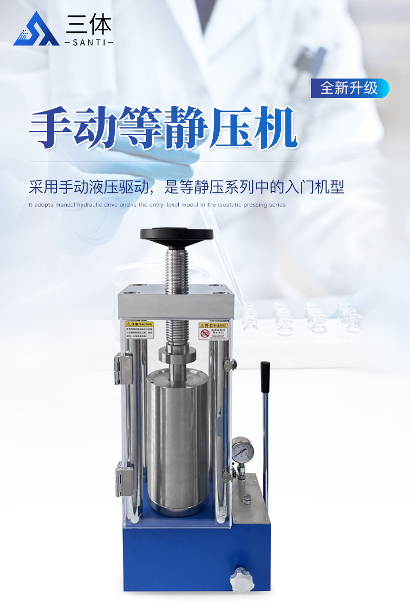 手動等靜壓機該機采用手動液壓驅(qū)動,是等靜壓系列中的入門機型,因其經(jīng)濟性,每次制樣取樣均需要搬動等靜壓腔體,適合制樣少,對工作效率要求不高,有力氣且安全意識較高的男士操作使用。