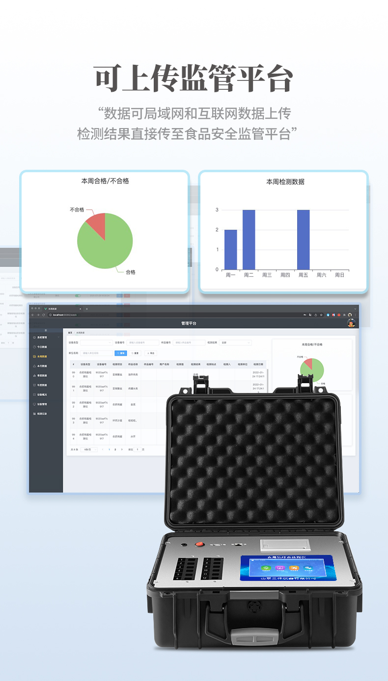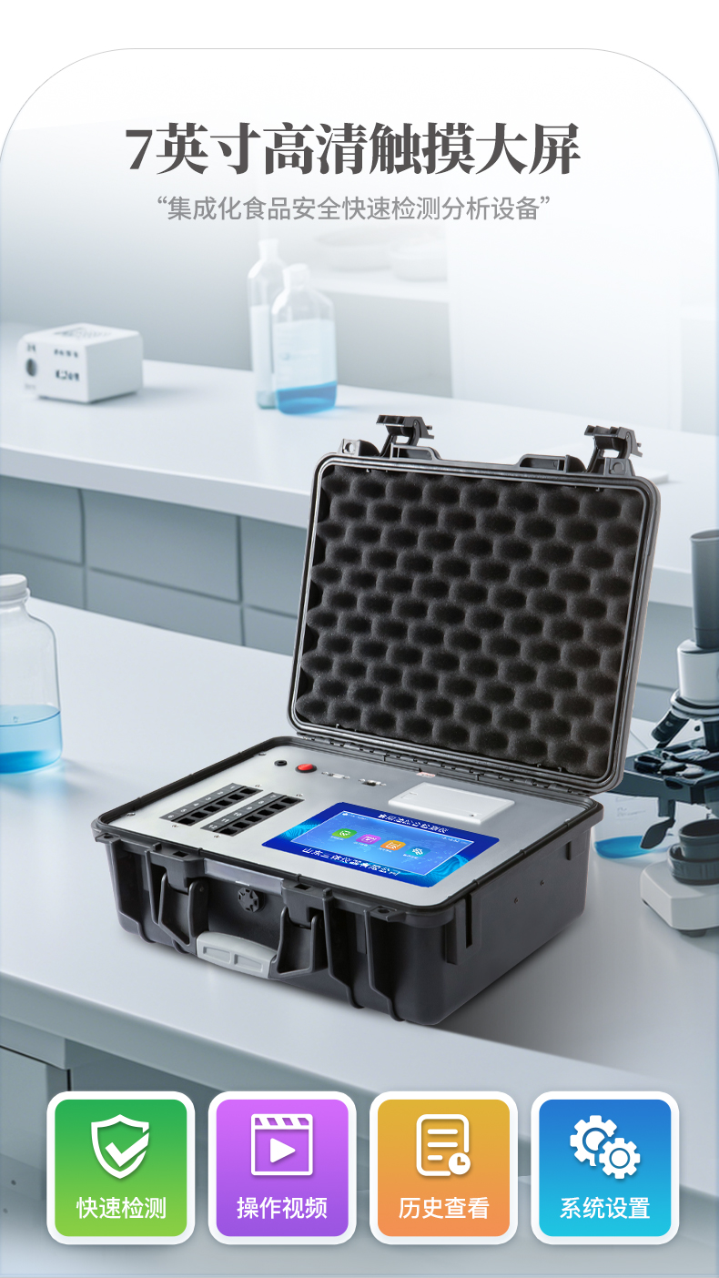4、一體化便攜式快檢設(shè)備,滿足現(xiàn)場及流動(dòng)檢測使用需求。